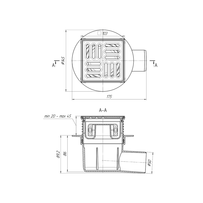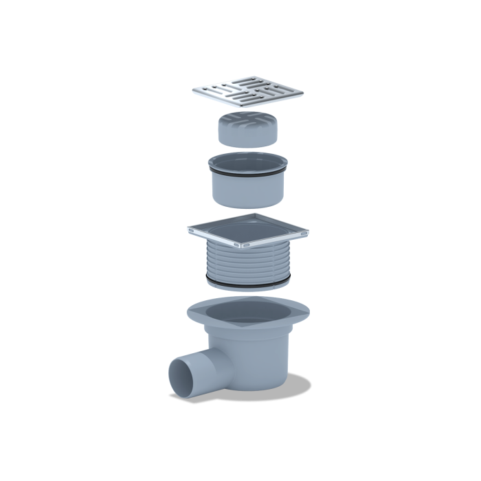 ТQ5602 Трап гориз. рег. с вып. 50мм, с метал. реш. 100*100 сухой