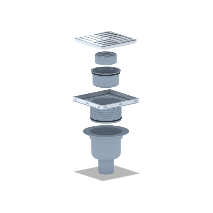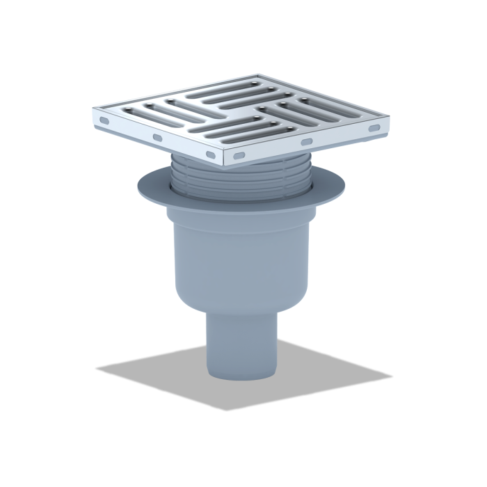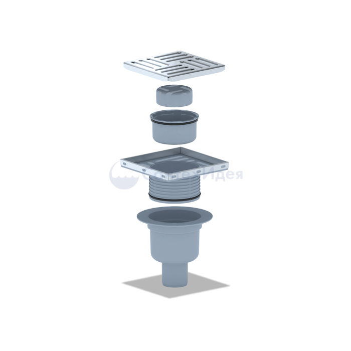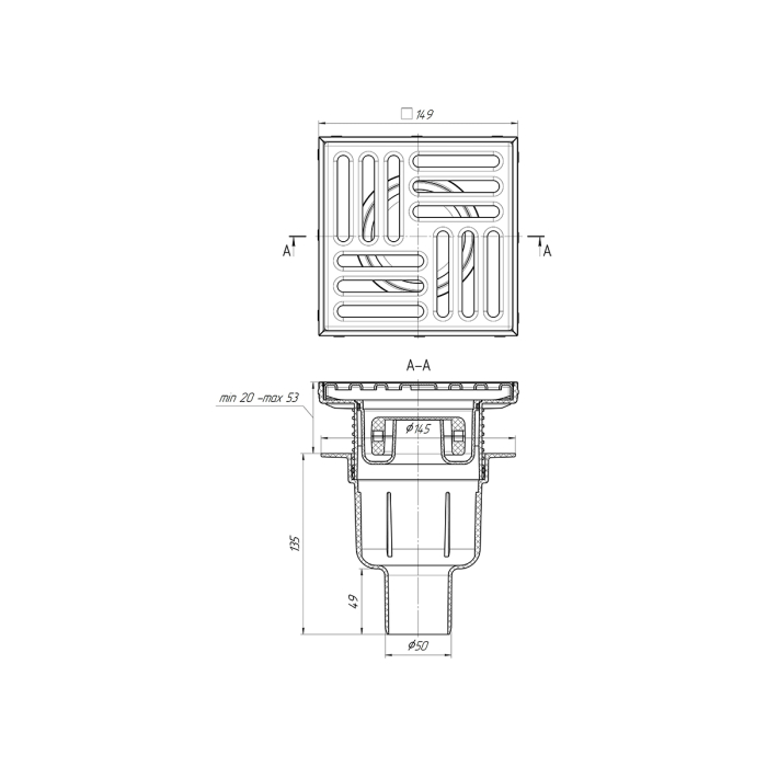 ТQ5712 Трап вертик. рег. с вып. 50мм, с нерж. реш. 150*150 сухой