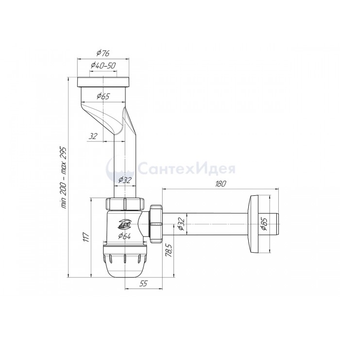 U1003 Сифон Ани д/писуара с вых на 32 и прямой трубой