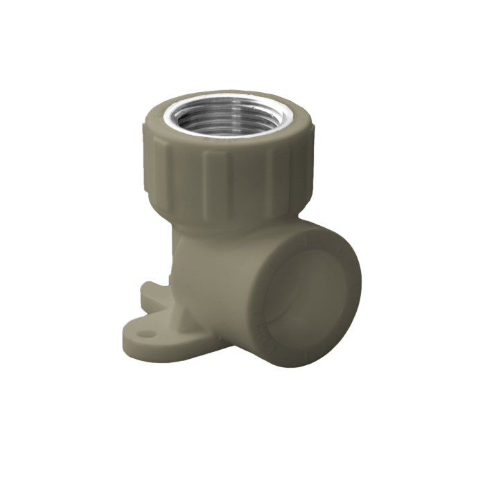 Угольник серого цвета с внутренней резьбой и с креплением к стене используется для соединения под углом 90о и одновременного крепления к вертикальной плоскости полипропиленовых труб с резьбовым фитингом с наружной резьбо...