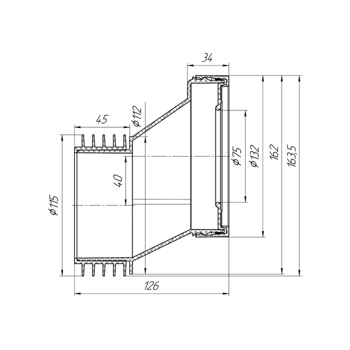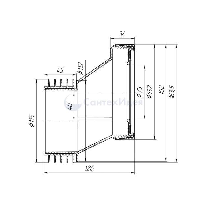 Эксцентрик для подключения унитаза к канализации диаметр 110мм. Для чугунных труб