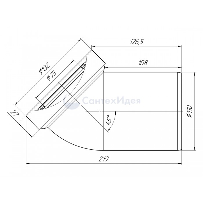 Труба для подключения унитаза к канализации короткая угол 45° диаметр 110мм. Для пластиковых труб |