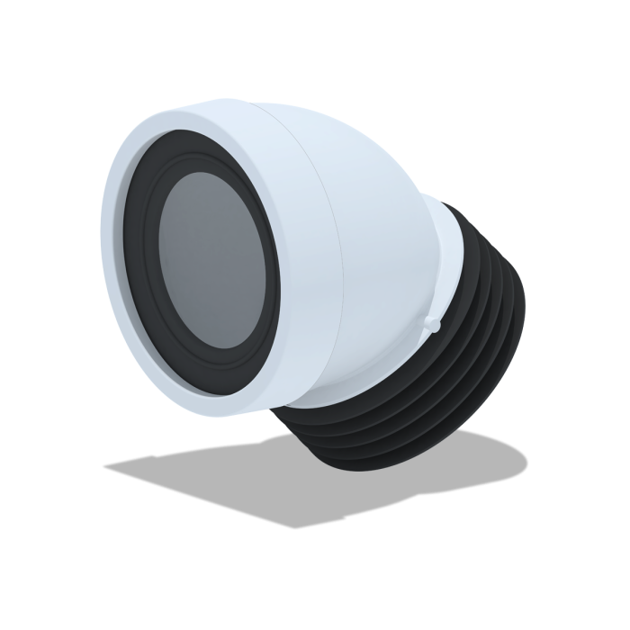 Труба для подключения унитаза к канализации короткая угол 45° диаметр 110мм. Для чугунных труб