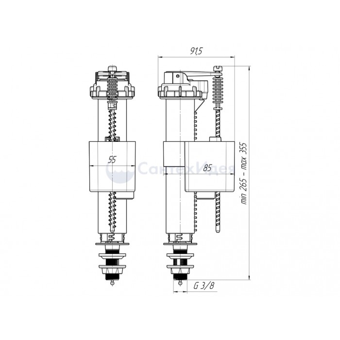 Наливной механизм бачка унитаза с нижней подводкой и пластиковой резьбой диаметром G 3/8 |