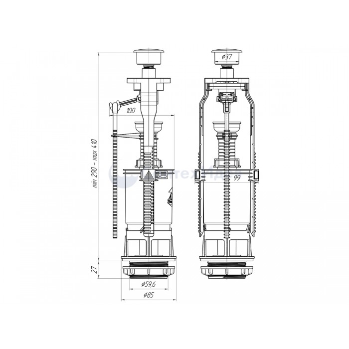 Сливной механизм бачка унитаза АНИ пласт WC7030 эконом, пластиковая белая кнопка, с одним режимом слива. Регулировка по высоте 290-410 мм. Отверстие для кнопки слива в крышке бачка 40 мм, посадочно...