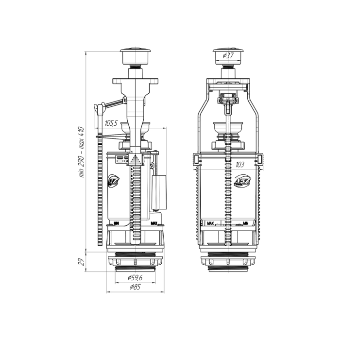 Сливной механизм бачка унитаза АНИ пласт WC7050С с двойной хромированной кнопкой, с двойным режимом слива. Регулировка по высоте 290-410 мм. Отверстие для кнопки слива в крышке бачка 40 мм, поса...